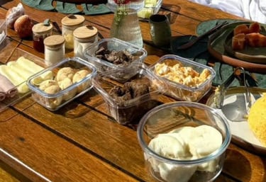 A Cabana possui uma cozinha totalmente equipada, caso deseje preparar refeições e temos uma cozinheira parceira com cardápio exclusivo que faz entrega na cabana de todas as refeições: café da manhã, almoço, jantar, petiscos, fondues, sanduíches, pizzas e etc...