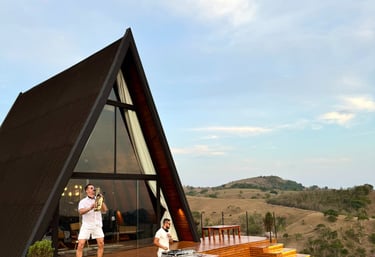 Temos um lounge exclusivo bem confortável para apreciar o por do sol 🌄